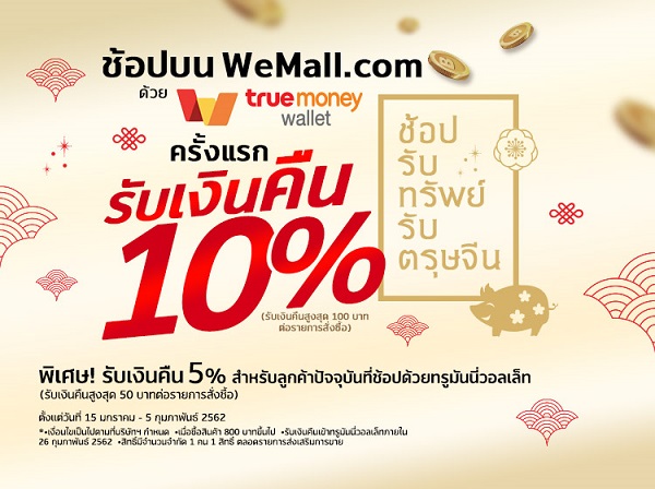 2.1 รับเงินคืน 10% สูงสุด 100 บาท เมื่อซื้อสินค้าบน WeMall.com ครบ 800 บาทขึ้นไป และชำระค่าสินค้าด้วยทรูมันนี่วอลเล็ท ในช่วงระยะเวลาส่งเสริมการขาย