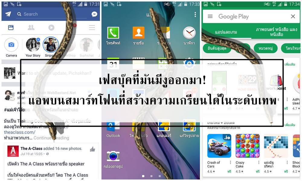 เฟสบุ๊คที่มันมีงูออกมา! แอพบนสมาร์ทโฟนที่สร้างความเกรียนได้ในระดับเทพ