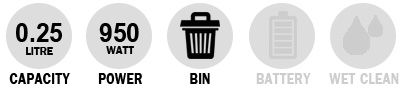 - กระบอกเก็บฝุ่นแบบใส ความจุ 0.25 ลิตร มองเห็นด้านในได้สะดวก