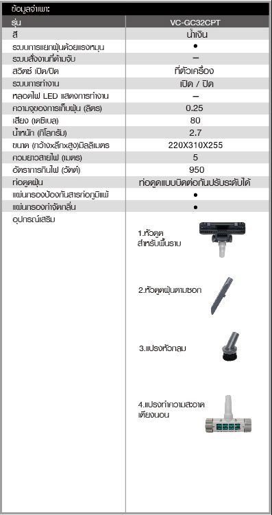 - Toshiba เครื่องดูดฝุ่น รุ่น VC-GC32CPT