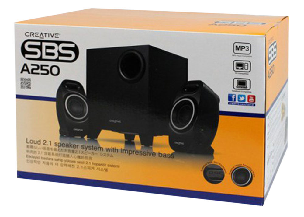 แบรนด์ : CREATIVE รุ่น : CRT-SBS A250 2.1 CH สี : Black ระบบเสียง : 2.1