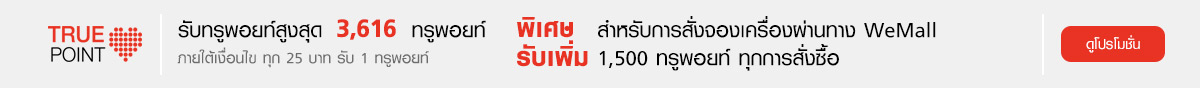 - ลูกค้าจะได้รับคะแนนสะสม 1 ทรูพอยท์ จากมูลค่าสินค้าทุก 25 บาท ต่อ 1 รายการสั่งซื้อ ต่อ 1 หมายเลขบัตรประชาชน