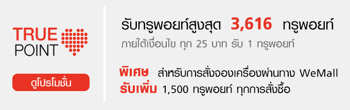 - ทรูยู ขอสงวนสิทธิมอบคะแนนสะสมทรูพอยท์ให้กับลูกค้าบุคคลธรรมดา ที่แจ้งหมายเลขประจำตัวประชาชน ในขั้นตอนการสั่งซื้อสินค้าผ่าน WeMall เท่านั้น